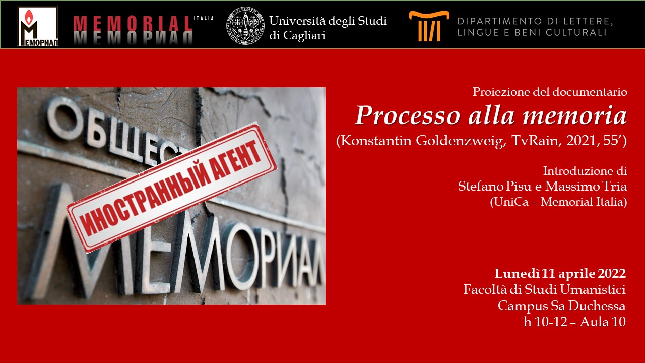 Convegni, seminari, eventi – 2022.07 Ripensare la guerra fredda cinematografica e proiezione del documentario Processo alla memoria (11 aprile 2022) prof. Stefano Pisu