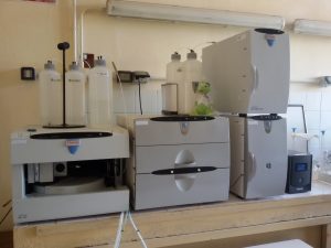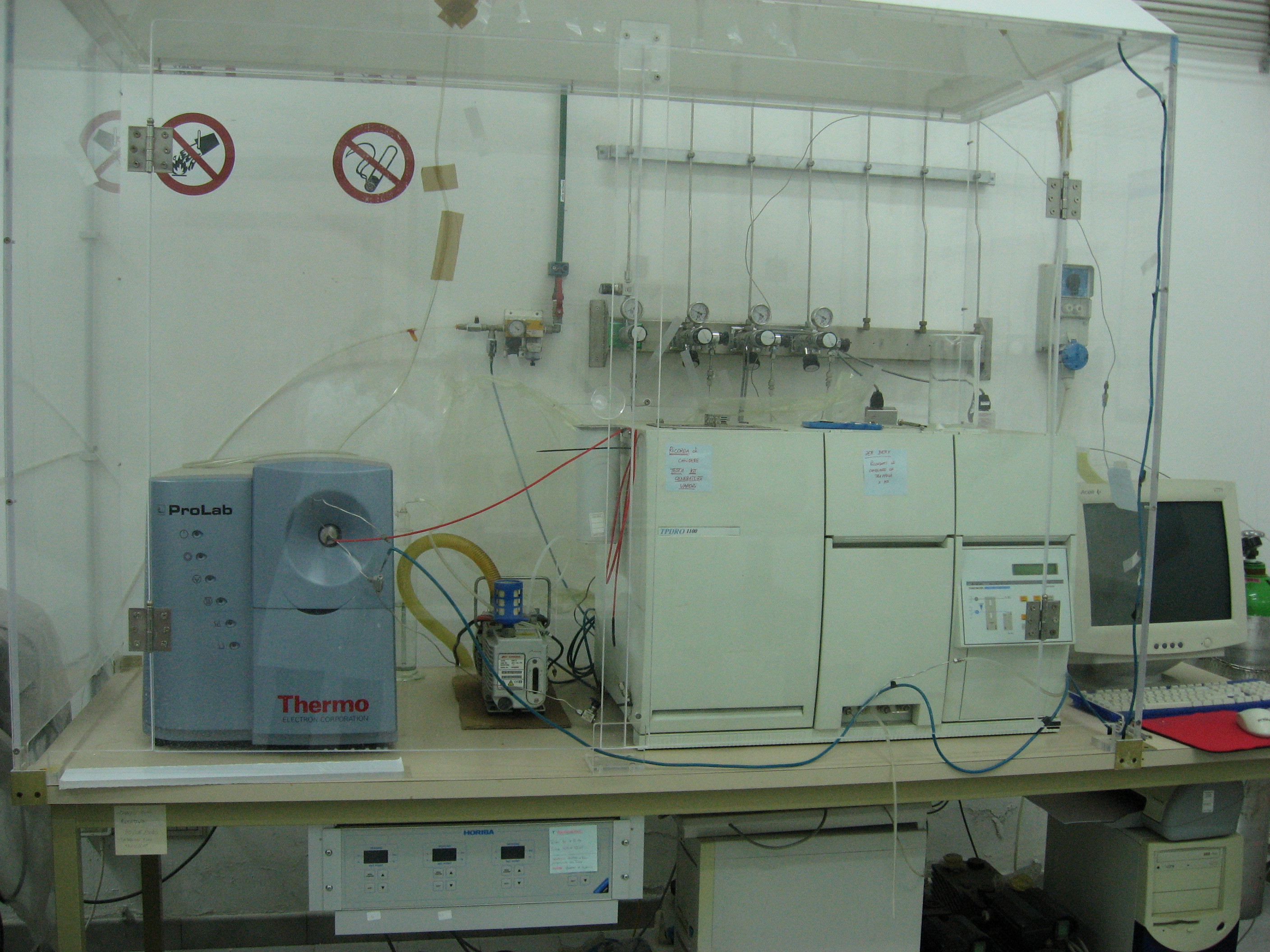 Descrizione: spettrometro di massa con sorgente al plasma ad accoppiamento induttivo, munito di autocampionatore e cella di reazione per l’eliminazione degli interferenti. Permette l’analisi multielementare di oltre 70 elementi in una grande varietà di matrici, consentendo la determinazione di elementi di particolare interesse ambientale con limiti di rivelabilità molto bassi, a livelli di tracce ed ultratracce, con possibilità quindi di individuare il background naturale in aree non contaminate e i trend evolutivi di situazioni a rischio. L’ICP-MS è interfacciato con una “laser ablation” (New Wave research), dotata di un raggio di lunghezza d’onda pari a 213 nanometri, che permette l’analisi diretta di campioni solidi, eliminando gli errori dovuti alla solubilizzazione e diluizione del campione, alla contaminazione da parte dei reagenti, riducendo inoltre i tempi legati alla preparazione del campione stesso.