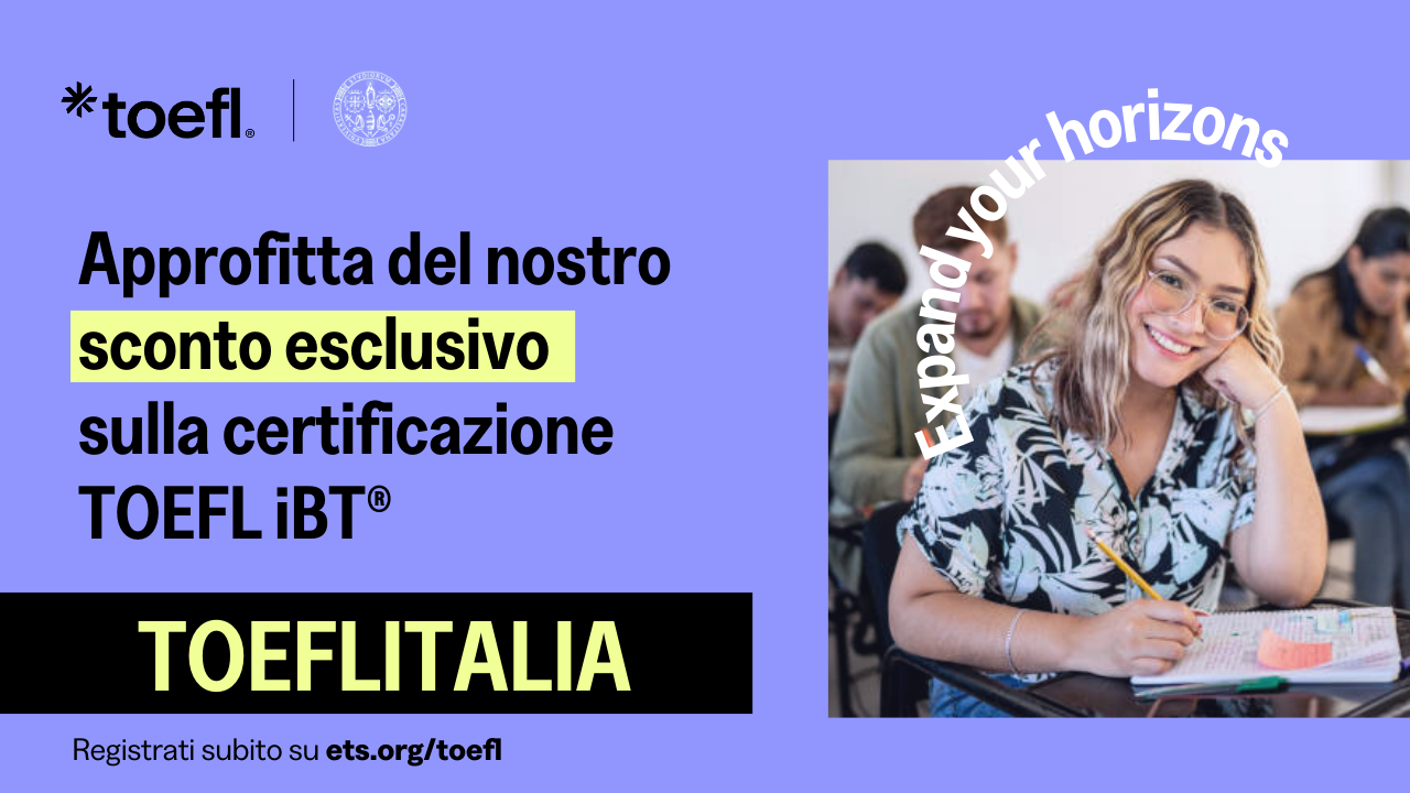 Per tutti gli studenti Unicat e’ previsto uno sconto del 20% sul prezzo del test con il codice sconto: TOEFLITALIA