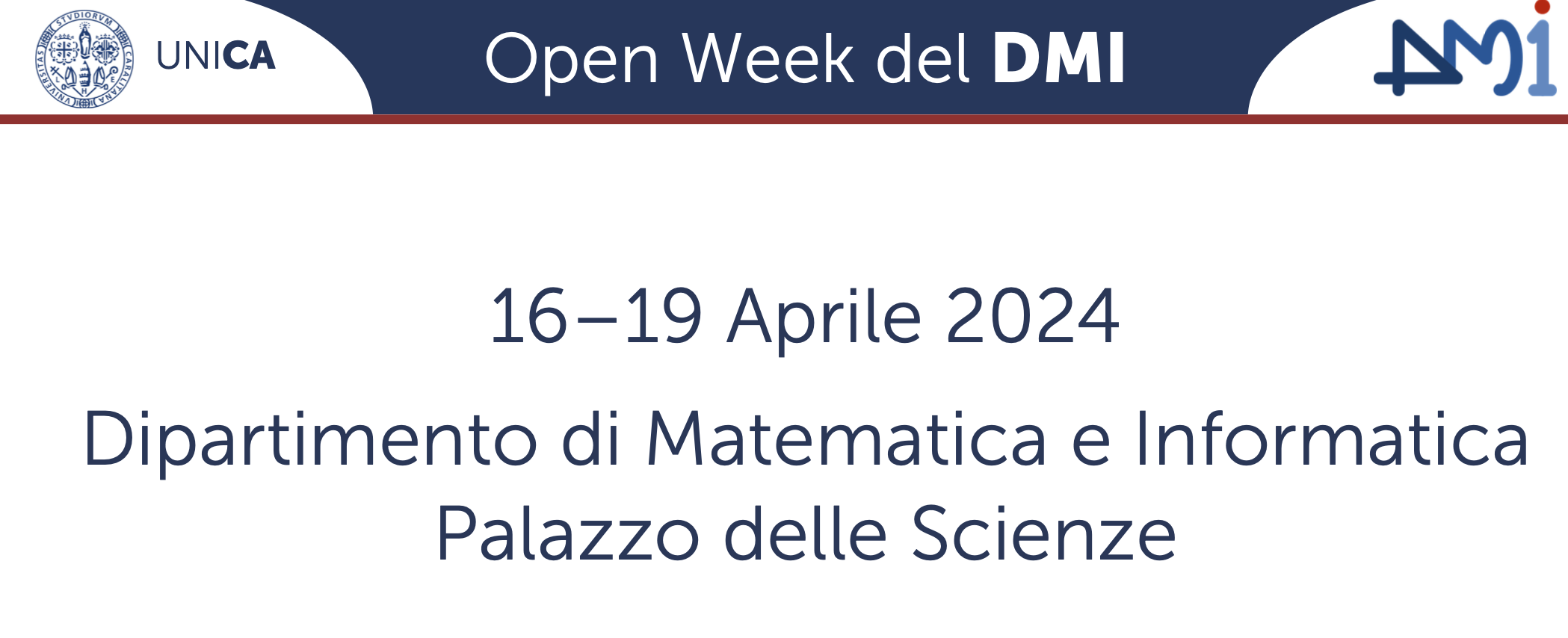L'Open Week si propone di avvicinare le studentesse e gli studenti delle Lauree Triennali e delle Lauree Magistrali del DMI alle ricerche svolte dal Dipartimento di Matematica e Informatica. Durante la Open-Week saranno esposti poster preparati dai gruppi di ricerca del dipartimento. La mattina del 19 aprile le ricercatrici e i ricercatori incontreranno le studentesse e gli studenti universitari nell'androne del Palazzo delle Scienze, dove saranno esposti i poster, per discutere e rispondere alle loro domande. Sempre durante la mattina si terranno: due presentazioni della Laurea Magistrale in Matematica; due presentazioni della Laurea Magistrale in Informatica; una presentazione del dottorato in Matematica e Informatica. Nel pomeriggio alcuni Alumni, oggi professionisti, racconteranno la loro esperienza. La giornata si concluderà con lo spettacolo teatrale della compagnia Teatro Boxer nell'Aula Magna ex Fisica.