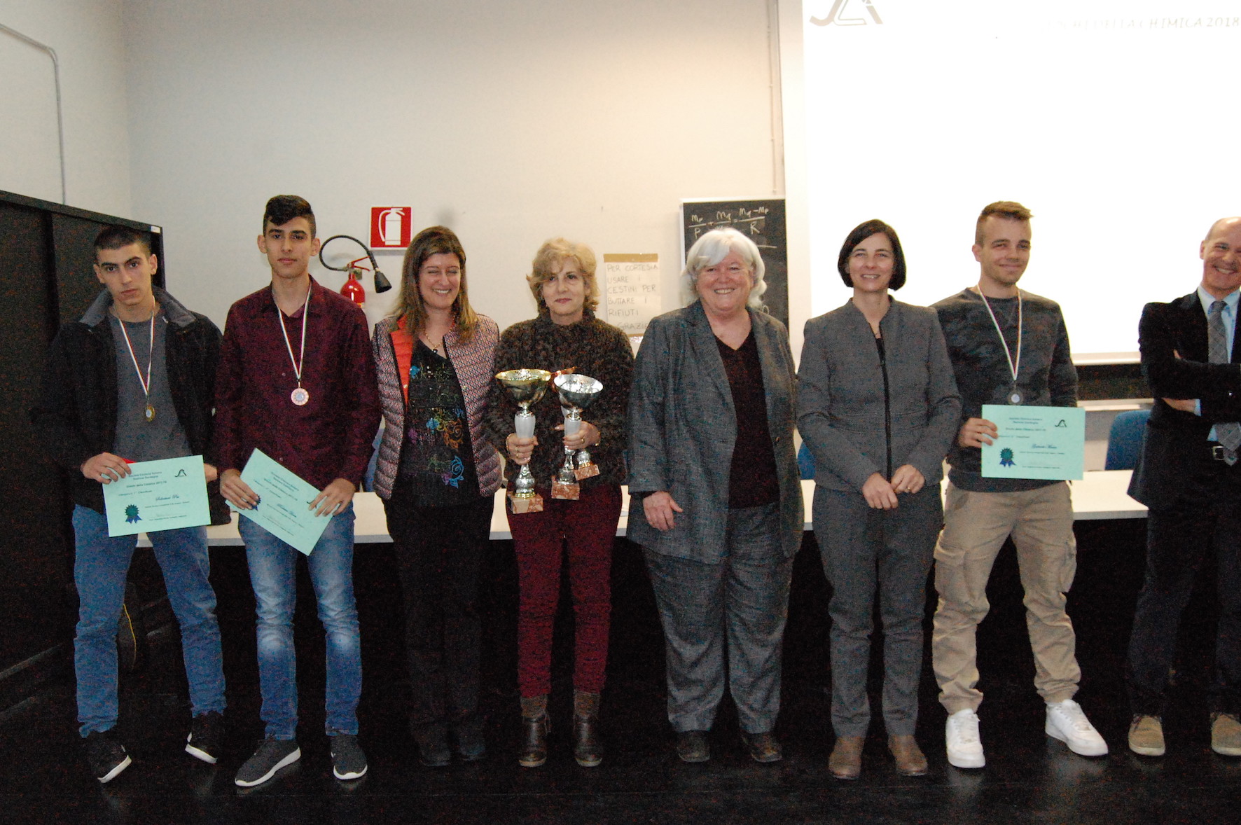 Alla manifestazione hanno partecipato 250 studenti di 18 scuole sarde suddivisi nelle tre classi di concorso: la classe "A" riservata agli studenti dei bienni iniziali di ogni tipo di scuola, la classe "B" riservata agli studenti dei successivi trienni (licei e Istituti tecnici) e la classe "C" riservata agli studenti dei trienni a indirizzo chimico degli Istituti Tecnici e Professionali. Ecco i nomi dei vincitori: