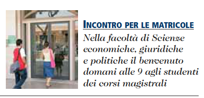 UNIVERSITÀ. Iniziativa per nuovi iscritti al polo economico e giuridico