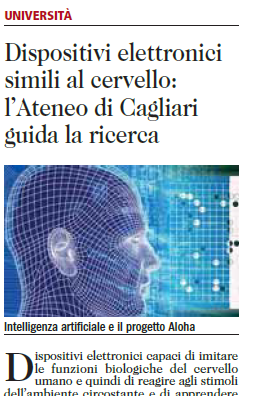 Dispositivi elettronici capaci di imitare le funzioni biologiche del cervello umano e quindi di reagire agli stimoli dell'ambiente circostante e di apprendere dall'esperienza. L'incredibile sfida dell'intelligenza artificiale, che coinvolge un team internazionale, è guidata dall'Università di Cagliari. Col coordinamento scientifico di Paolo Meloni (Laboratorio di Microelettronica e bioingegneria del Dipartimento di Ingegneria), i ricercatori lavoreranno al progetto Aloha. Finanziato dall'Ue con 6 milioni di euro del programma Horizon 2020, ne destina 500mila alle attività dell'Ateneo sardo.