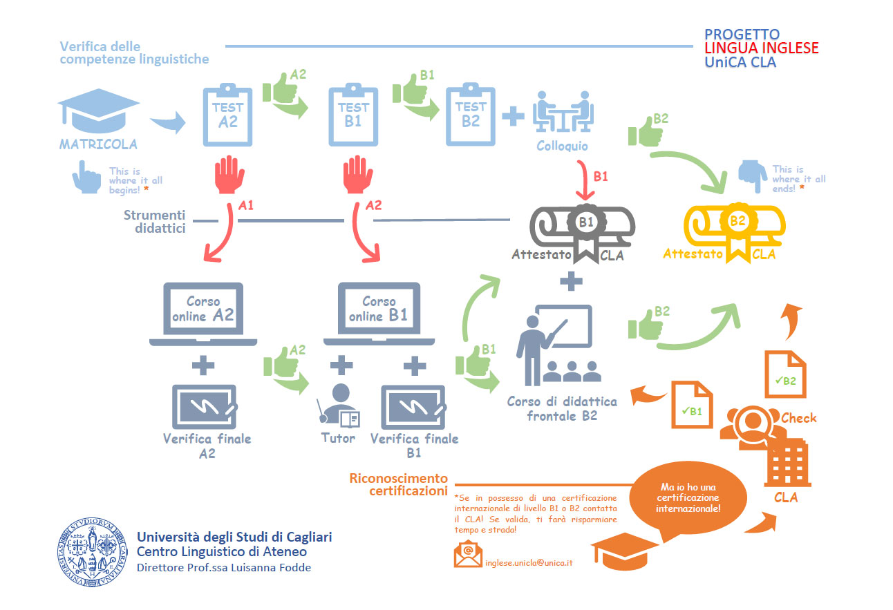 - A regime, gli studenti che non hanno superato il test B1 dovranno obbligatoriamente seguire il corso online della durata di 3 mesi circa, accompagnati da tutor laureati. Al termine del corso, gli studenti sosterranno un test finale, sia scritto che orale, tenuto da docenti CLA.
