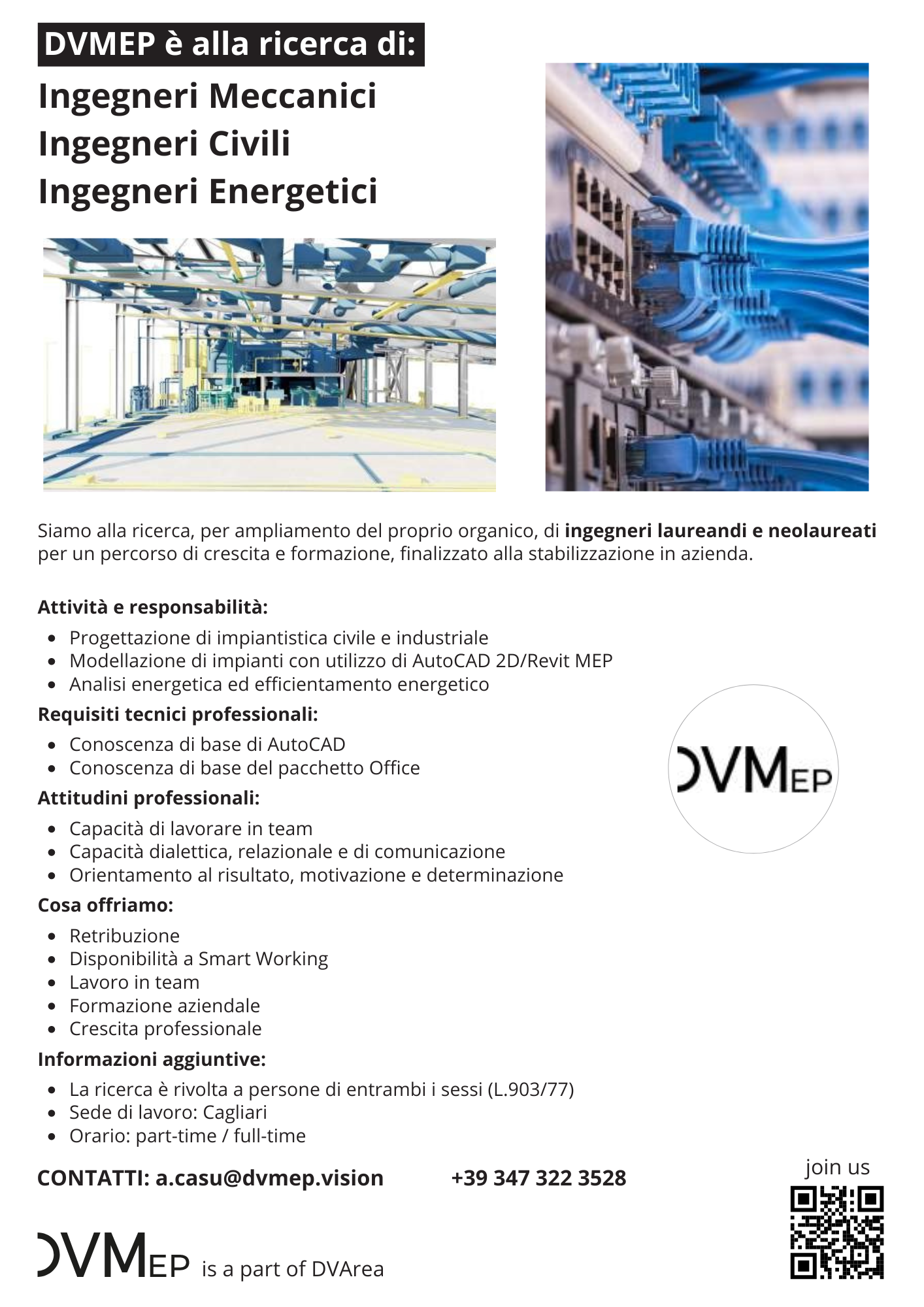 La società DVMEP (https://dvmep.vision), del gruppo DVArea, per ampliamento organico, è alla ricerca di laureandi e neolaureati in: