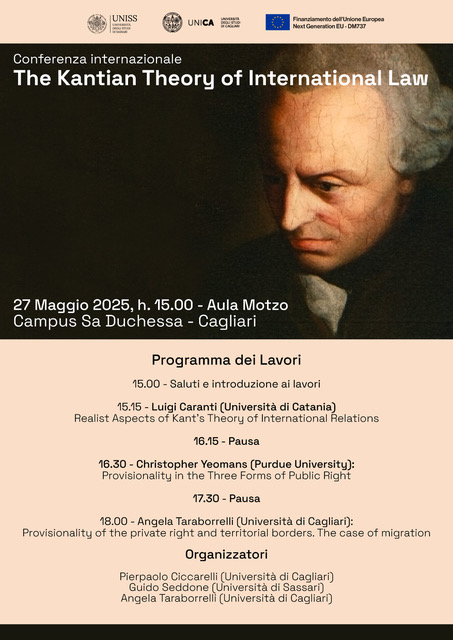 Segnalo che martedì 27 maggio 2025, alle ore 15:00, presso l’Aula Magna Motzo del Campus Sa Duchessa, si terrà la conferenza internazionale dal titolo "The Kantian Theory of International Law".
