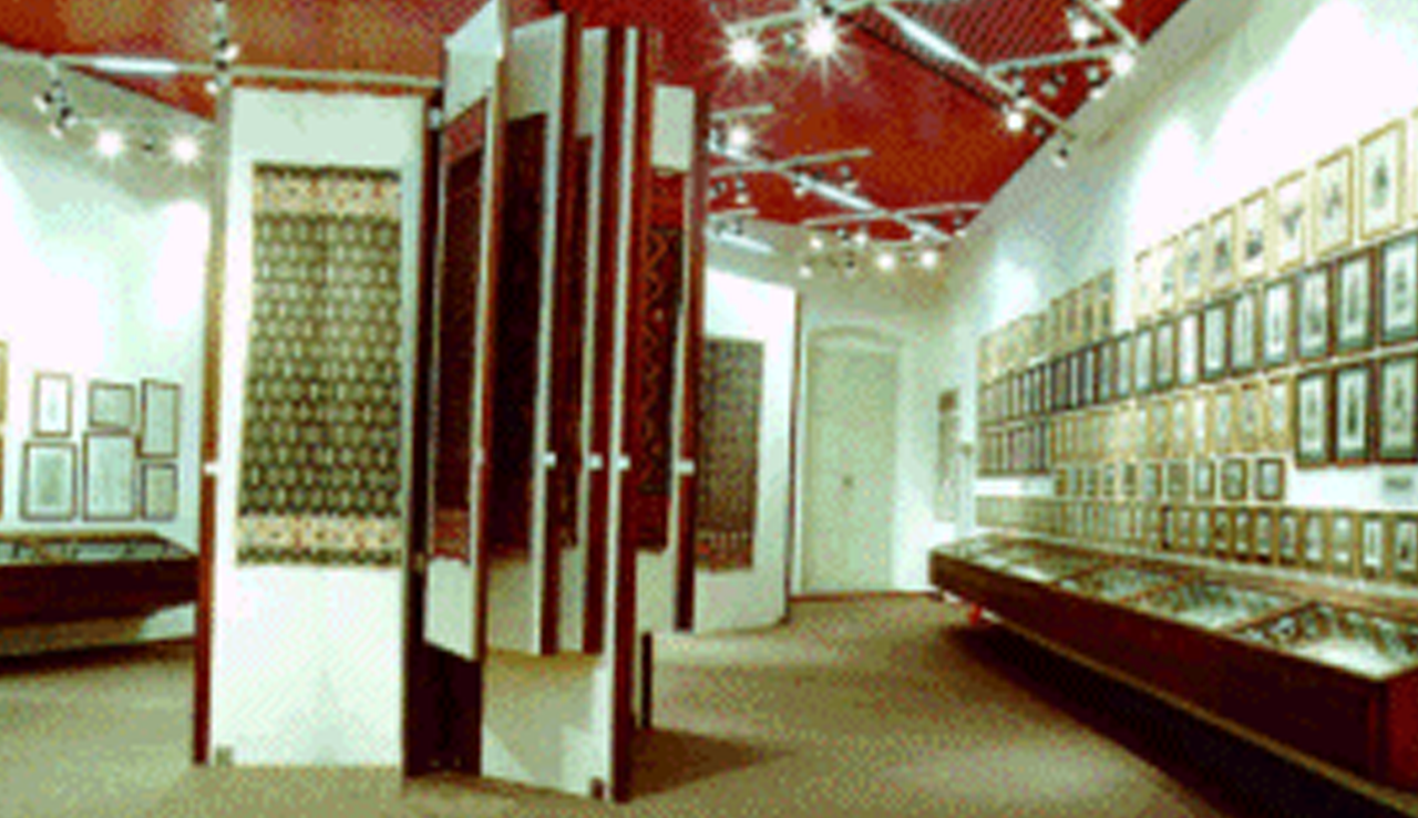 - Sala V Nelle pareti e in vetrine: Carte geografiche e piante, Costumi sardi (stampe, disegni, acquerelli e tempere); in pannelli: Tappeti sardi, "mantas", "coberibancus" e "bertulas".