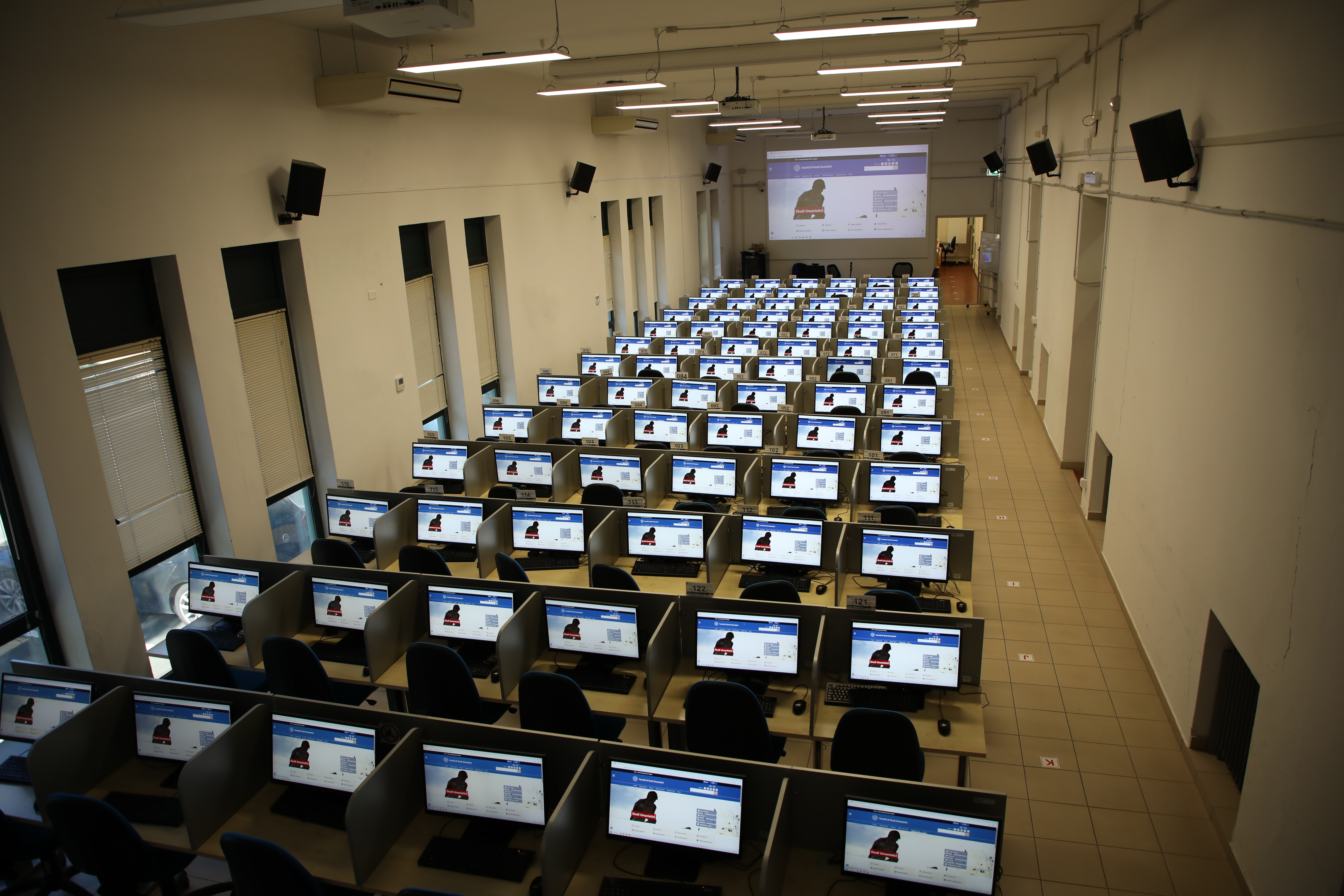 - 84 postazioni utente di cui 2 adattate per i portatori di disabilità, dotate di Windows 11 e Microsoft Office 2016;