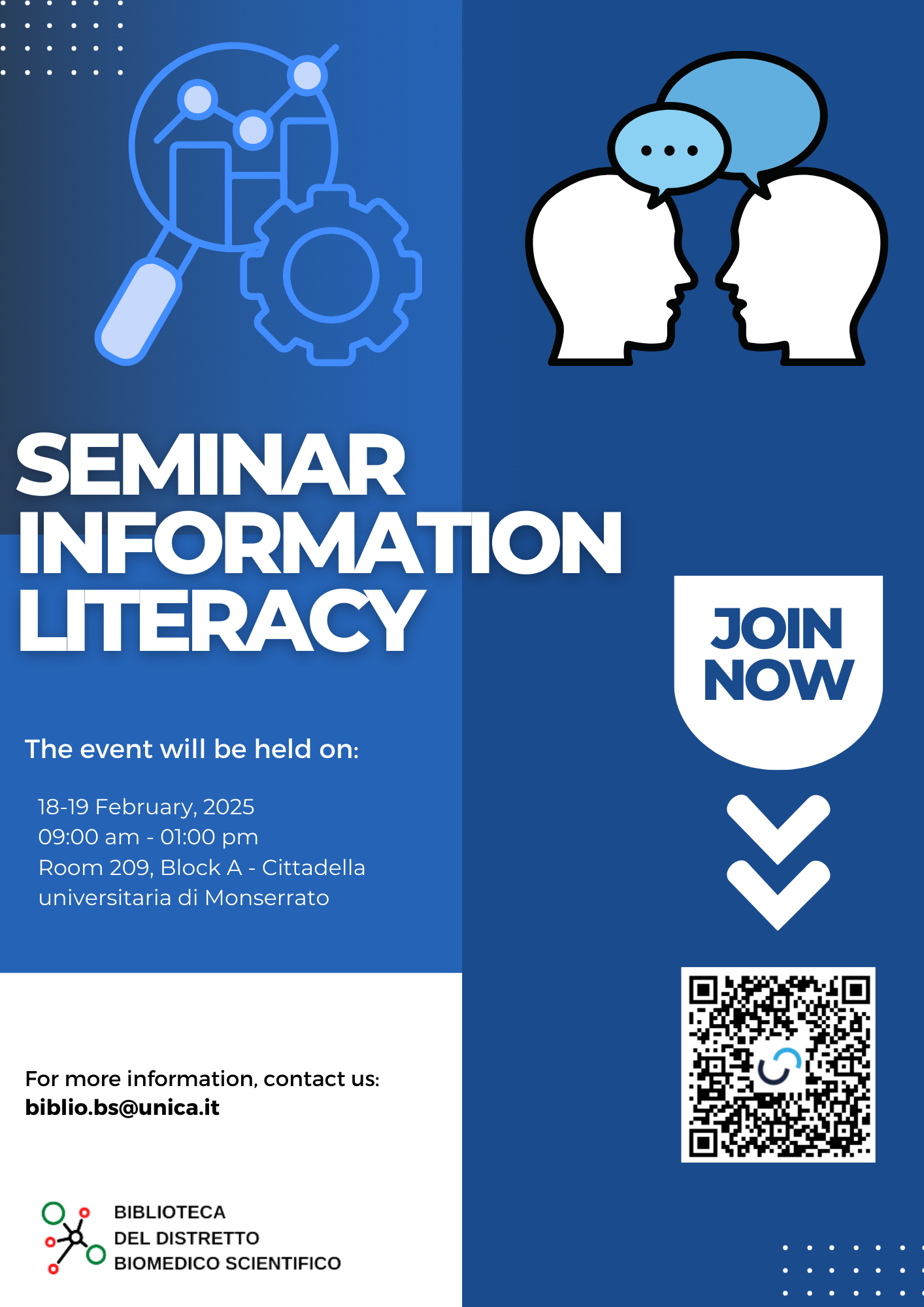 Vi ricordiamo che ci sono ancora dei posti disponibili per i mini corsi di Information Literacy che iniziano il 5 febbraio e che il Seminario verrà riproposto nei mesi di giugno e settembre. Vi consigliamo di consultare periodicamente la nostra pagina web o di seguirci sui social per tutti gli aggiornamenti.