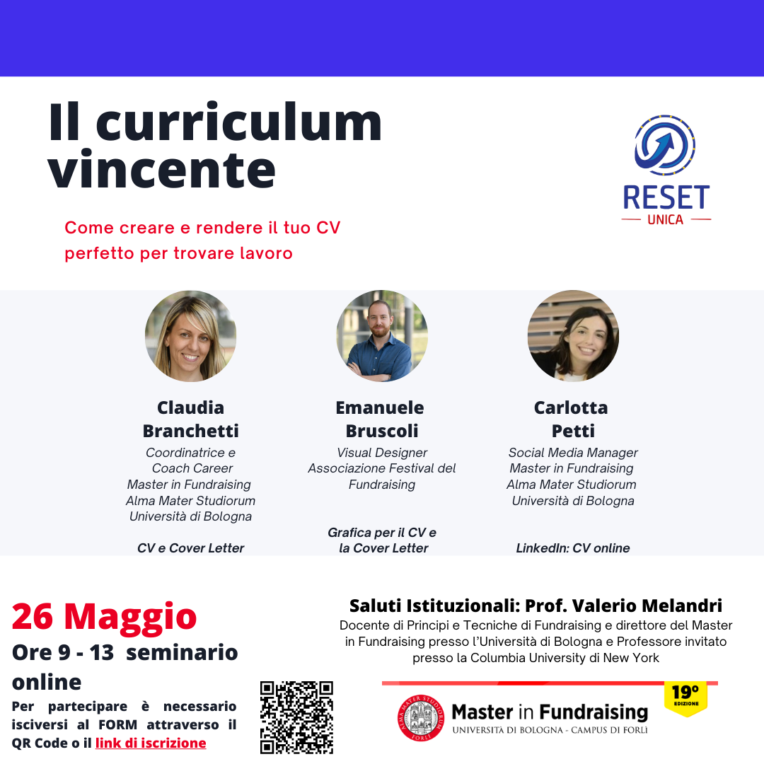 organizzato da Reset UniCa e in collaborazione con il Master in Fundraising dell’Alma Mater Studiorum – Università di Bologna
