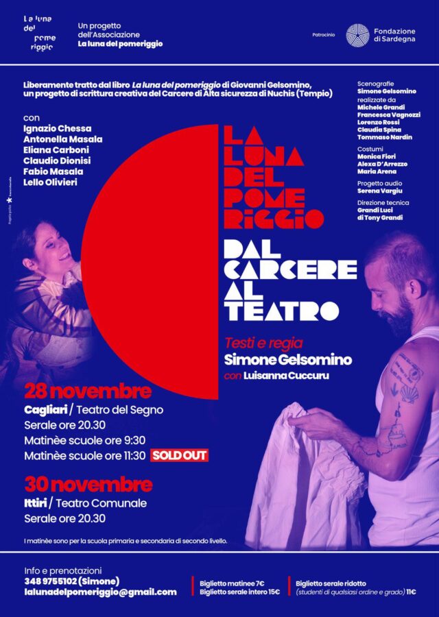L'Associazione LA LUNA DEL POMERIGGIO presenta alle studentesse e agli studenti dei CORSI DELL'AREA PEDAGOGICA la propria esperienza teatrale ed educativa nell'Istituto Penitenziario di Nuchis.