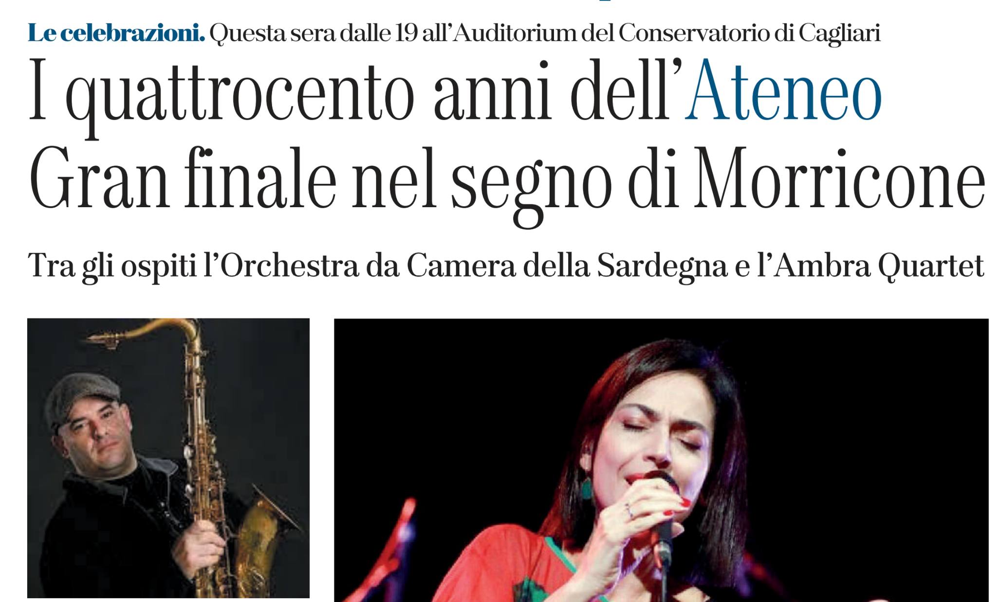 Gran finale, questa sera dalle 19 all'Auditorium del Conservatorio di Cagliari, degli eventi di celebrazione del quarto centenario dell'Università. Il concerto, fortemente voluto dal rettore Francesco Mola e dal direttore generale Aldo Urru, rappresenta la conclusione del fitto calendario di appuntamenti che dal 2020 hanno segnato l'importante ricorrenza. «Tornare a vivere» «La capacità dell'Ateneo di reagire alle difficoltà del particolare momento storico che tutti abbiamo vissuto», spiega il Magnifico, «ci consente oggi, finalmente, di riprendere a vivere l'Università in una rinnovata e inusuale normalità, lontana dal baratro aperto dalla pandemia; con il desiderio di ritrovare sempre più frequentemente occasioni di socialità e confronto. Forse questa è stata la spinta maggiore a compiere questo ulteriore sforzo organizzativo e lasciare alla storia delle celebrazioni del quadricentenario questo evento». Musiche dal mondo «Per la specialissima ricorrenza di questa sera abbiamo pensato di festeggiare proponendo musiche diverse – nel suono, nella provenienza, nei significati, nei valori culturali e così via – e affidandole alla rilettura di affermati artisti sardi conosciuti e apprezzati in tutta Europa e nel resto del mondo. Artisti la cui alta qualità musicale si basa espressamente su un solido background culturale maturato nell'isola natia». Gli artisti Il programma della serata, con voce narrante di Ambra Pintore, vedrà sul palco di piazza Porrino l'esibizione dell'Orchestra da Camera della Sardegna diretta dal maestro Simone Pittau, dei Tenore Supramonte di Orgosolo, dei 400th Blues Quintet (Mauro Mulas, Gavino Murgia, Francesco Piu, Gavino Riva e Daniele Russo, artisti diversi insieme per l'occasione) e dell'Ambra Quartet. L'Orchestra da Camera della Sardegna eseguirà musiche di Ennio Morricone e di Benjamin Britten. Nel nome del maestro «La scelta delle musiche di Ennio Morricone», si legge nel libretto della serata, «è motivata dal particolare legame del nostro Ateneo con il maestro romano. A lui, infatti, nel 2000, l'Università di Cagliari ha conferito la Laurea Honoris Causa in Lingue e Letterature Straniere, un titolo di cui si riporta fosse particolarmente orgoglioso». «Di nuovo insieme» «L'augurio per tutti è che il senso di appartenenza alla nostra istituzione possa continuare a manifestarsi nell'impegno quotidiano», conclude il rettore Francesco Mola, «e che in futuro, occasioni come questa, siano sempre più frequenti per ritrovarci a godere di una serata di musica insieme». Lo streaming I biglietti disponibili per la serata sono andati esauriti in poche ore: per questo il concerto sarà trasmesso in diretta streaming sul sito web dell'Ateneo (www.unica.it). L'accesso in sala è consentito soltanto con il Green pass.