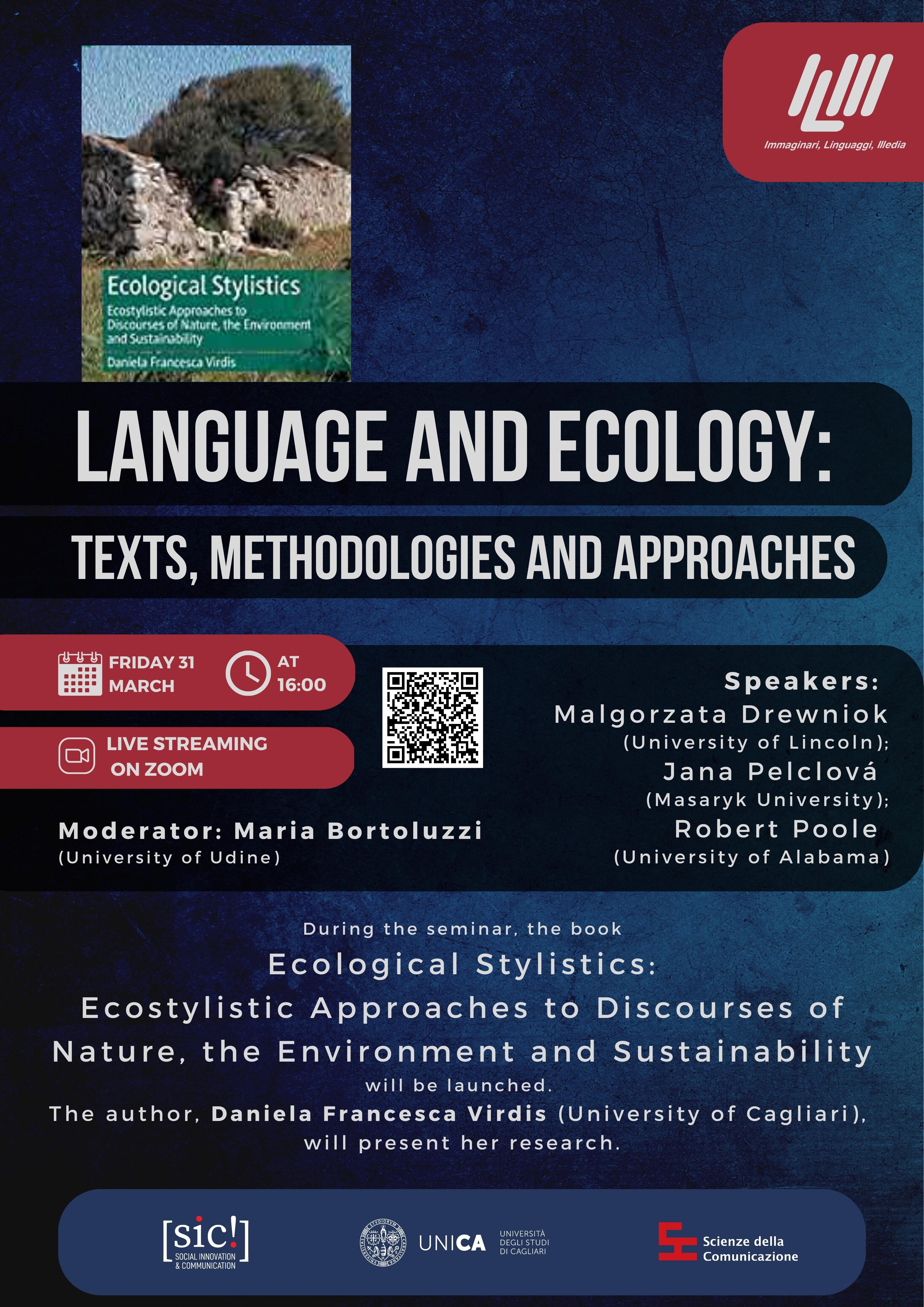 During the seminar, the book “Ecological Stylistics: Ecostylistic Approaches to Discourses of Nature, the Environment and Sustainability” will be launched. The author, Daniela Francesca Virdis (University of Cagliari), will present her research.