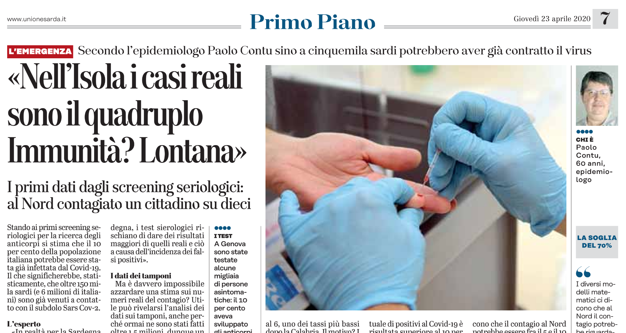 Infine, ma non certamente per ultimo, il giornalista de “L’Unione Sarda” Massimo Ledda ha intervistato Paolo Contu, docente di Igiene e di Epidemiologia, sulla possibile immunità della popolazione sarda. La lunga conversazione con il professore è stata pubblicata il 23 aprile scorso.