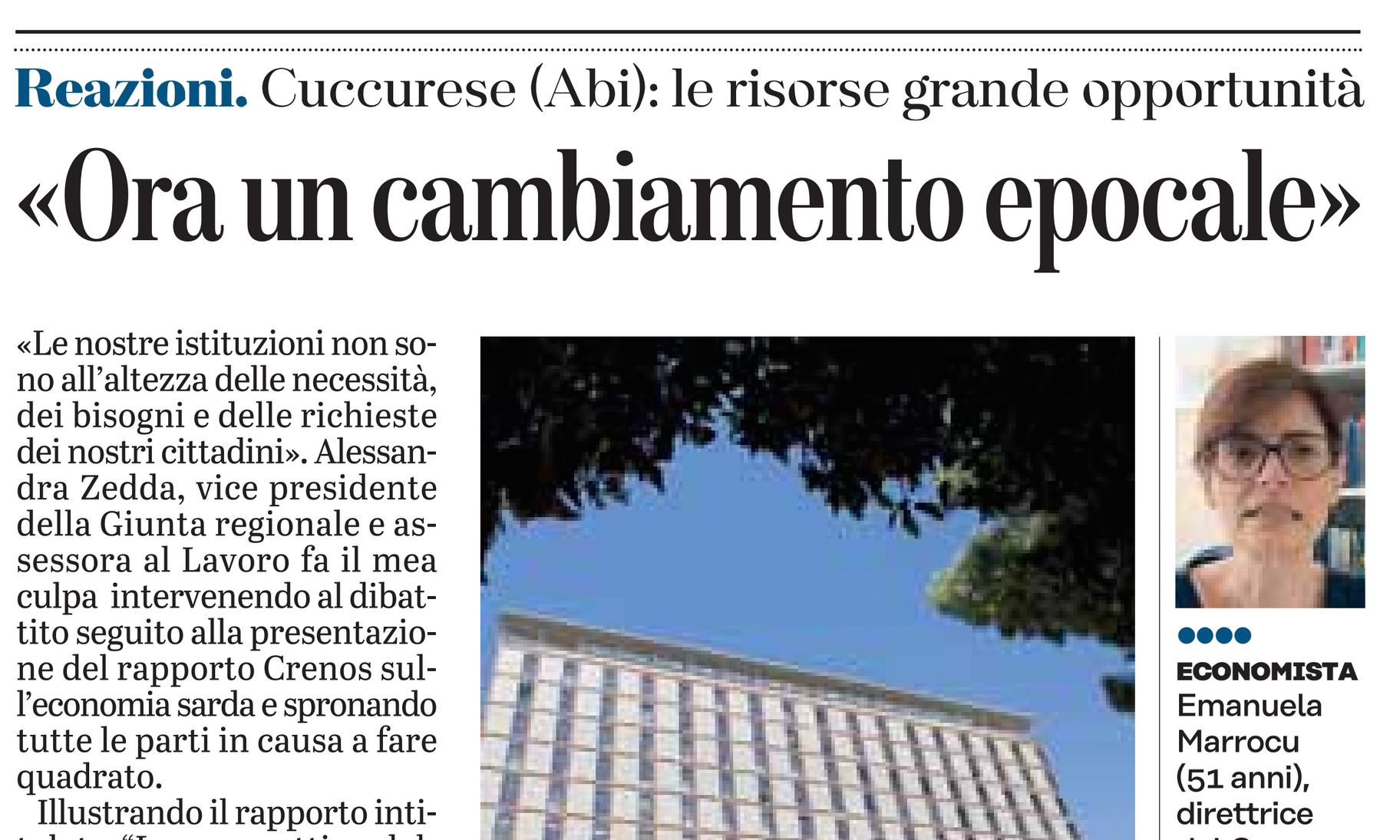 Illustrando il rapporto intitolato “Le prospettive dell'economia in Sardegna dopo la pandemia”, anche i curatori Emanuela Marrocu, direttrice del Crenos, Carlo Mannoni, direttore generale della Fondazione di Sardegna, Bianca Biagi e Barbara Dettori delle Università di Sassari e Cagliari, hanno evidenziato che nell'Isola «serve un cambiamento epocale fondato su capitale umano, sociale e ambientale e qualità delle istituzioni».