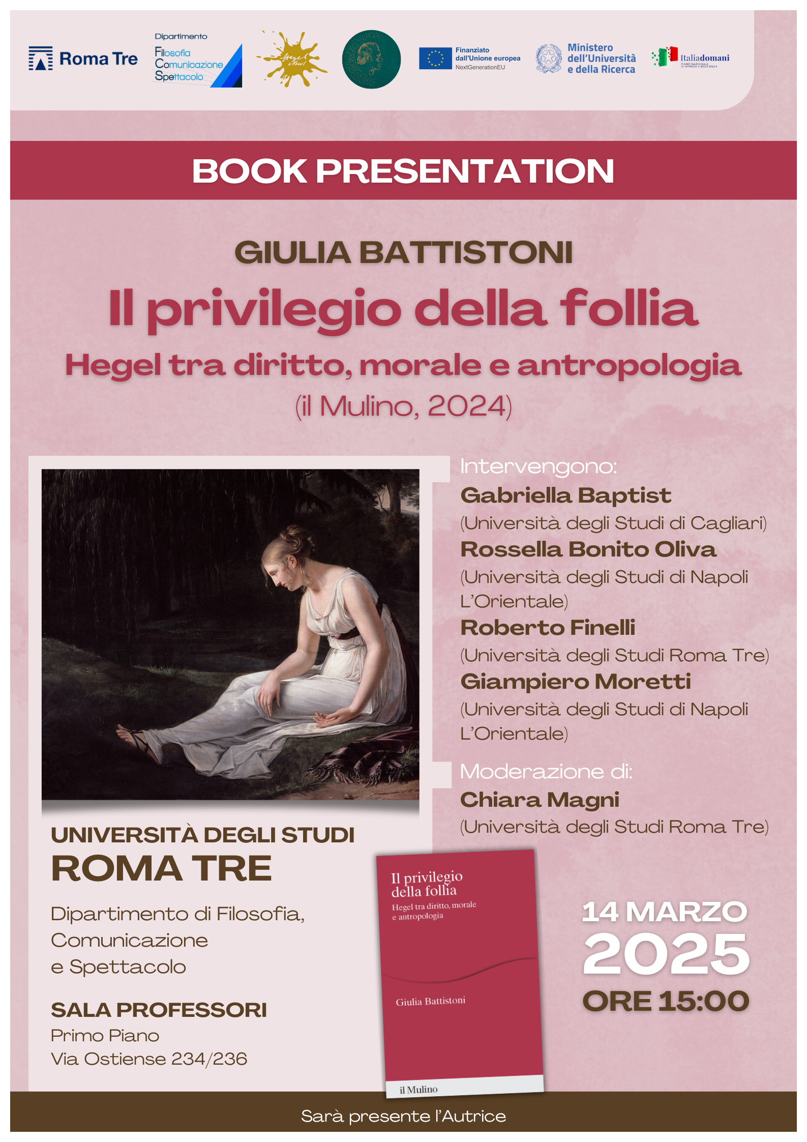 Presentazione del libro di Giulia Battistoni, Il privilegio della follia. Hegel tra diritto, morale e antropologia
