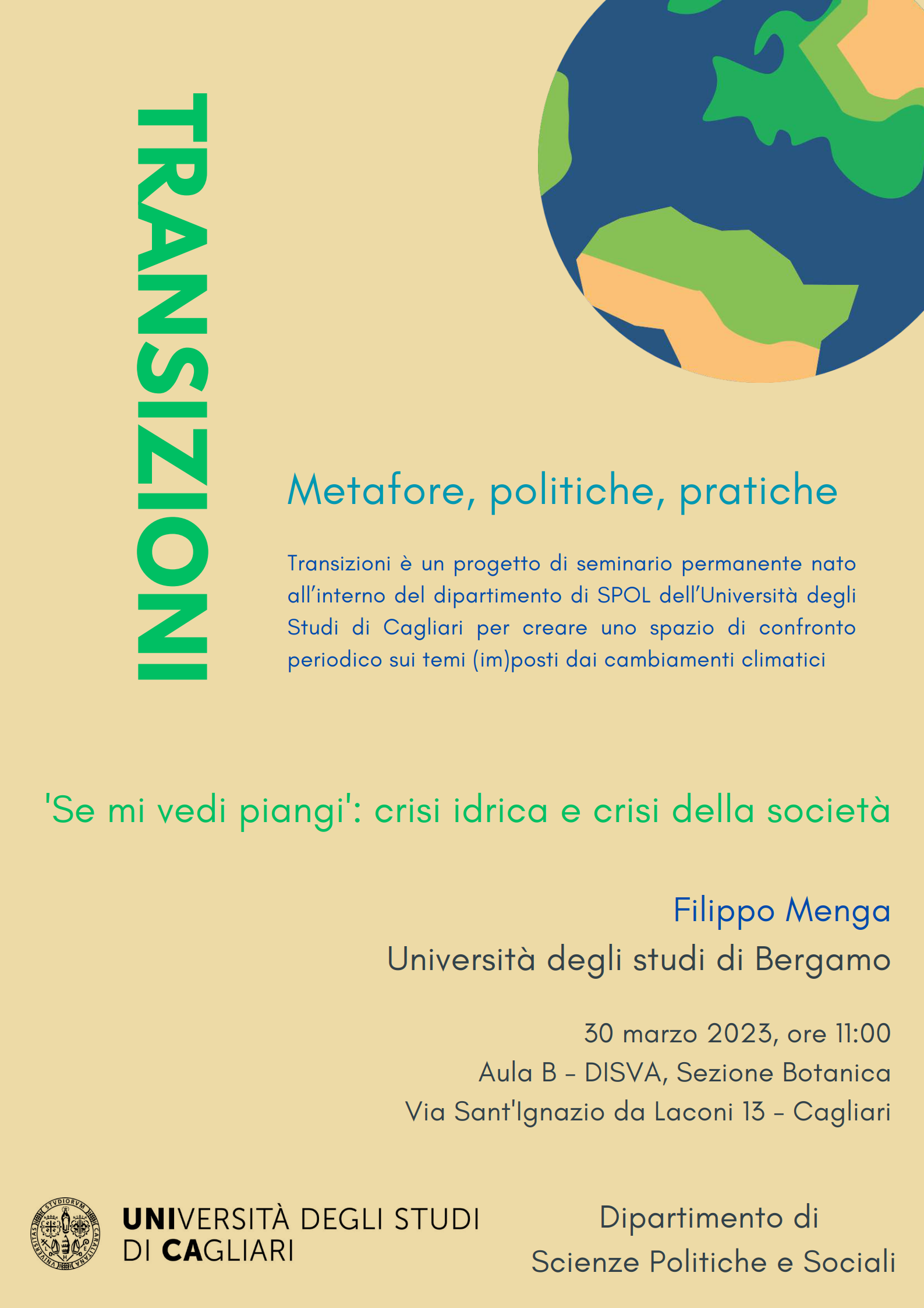 'Se mi vedi piangi': crisi idrica e crisi della società, seminario di Filippo Menga, Università degli studi di Bergamo