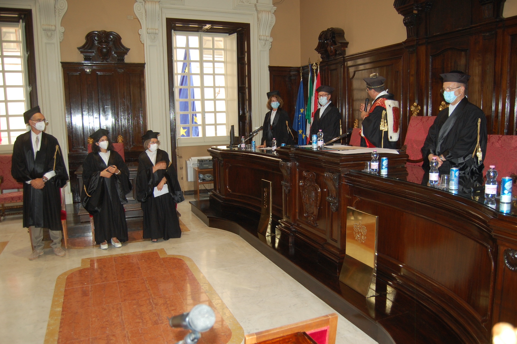 Nell'Aula magna di Palazzo Belgrano parenti, amici e docenti della studentessa e dei due studenti scomparsi, rappresentati davanti alla commissione in particolare dalle mamme che hanno ritirato il riconoscimento dalle mani del Magnifico