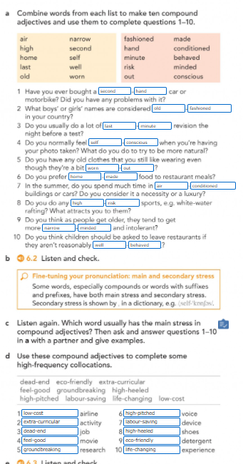 Answers to grammar bank 6B and compound adjectives (page 59)