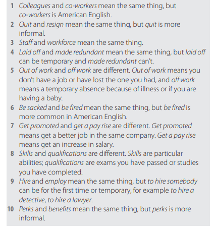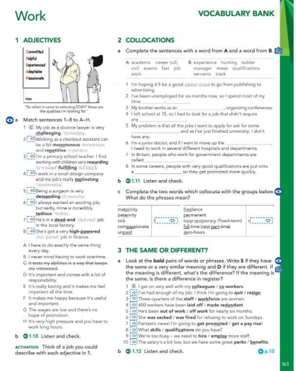 Plus homework from VOCABULARY BANK page 163 on WORK - exercise and key.