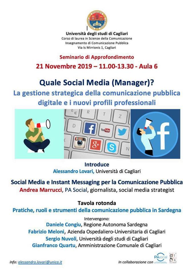 L’incontro è organizzato dal professor Lovari in collaborazione con PA Social e GUS – Gruppo Uffici Stampa Sardegna.