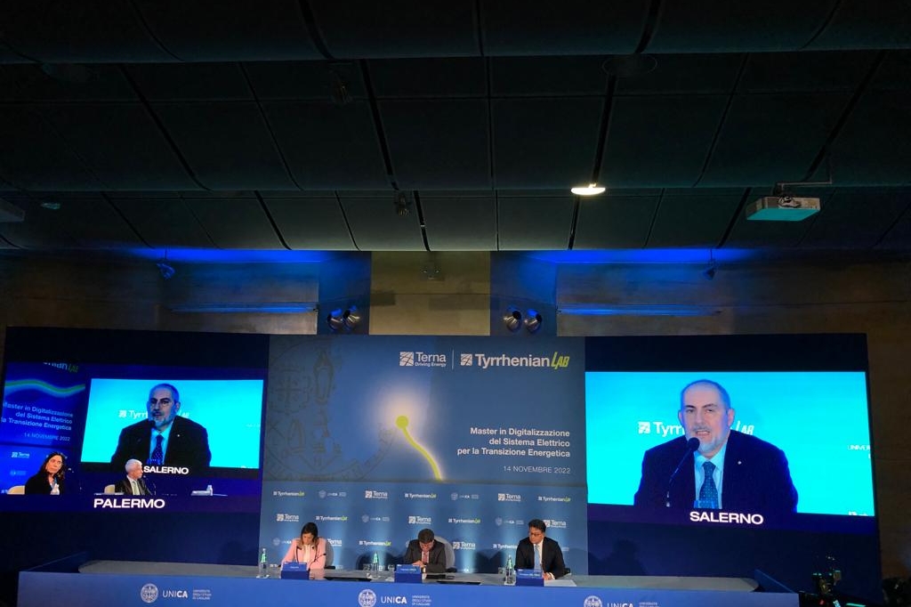 L'emozione dei docenti e dei partecipanti, le indicazioni dalla regia impegnata nel connettere Cagliari con Salerno e Palermo, le riprese dei media locali. L’aula magna di Ingegneria e architettura ha ospitato l’inaugurazione del nuovo master in Digitalizzazione del sistema elettrico per la transizione energetica. Un progetto che guarda al futuro: oltre duecento assunzioni e cento milioni di euro di investimenti nel prossimo quinquennio. Terna e le tre Università, il triangolo pregiato Sardegna, Campania e Sicilia che promette bene. Il corso fa capo al Tyrrhenian Lab, l’infrastruttura più importante dell’azienda, ed è al centro di un programma di alta formazione e specializzazione distribuito nelle sedi delle Università di Cagliari, Salerno e Palermo, le città in cui approderanno i cavi del Tyrrhenian Link.