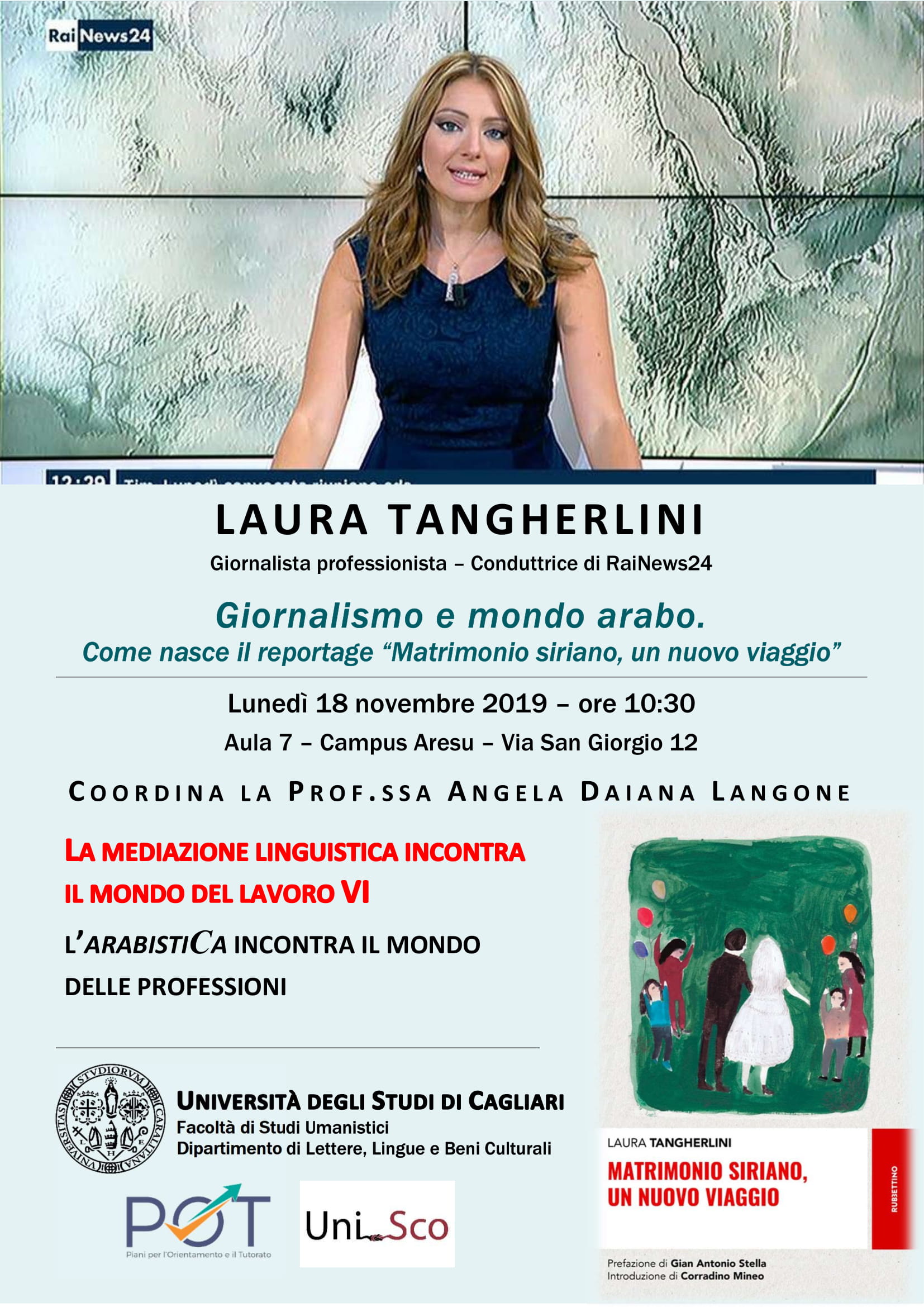 Cagliari, 10 novembre 2019 - Nell'ambito dell’iniziativa “La mediazione linguistica incontra il mondo del lavoro”, e dello specifico panel “L'arabistiCa incontra il mondo delle professioni”, sarà all'Università di Cagliari Laura Tangherlini, giornalista conduttrice di RaiNews24, per presentare il suo libro “Matrimonio siriano, un nuovo viaggio”.
