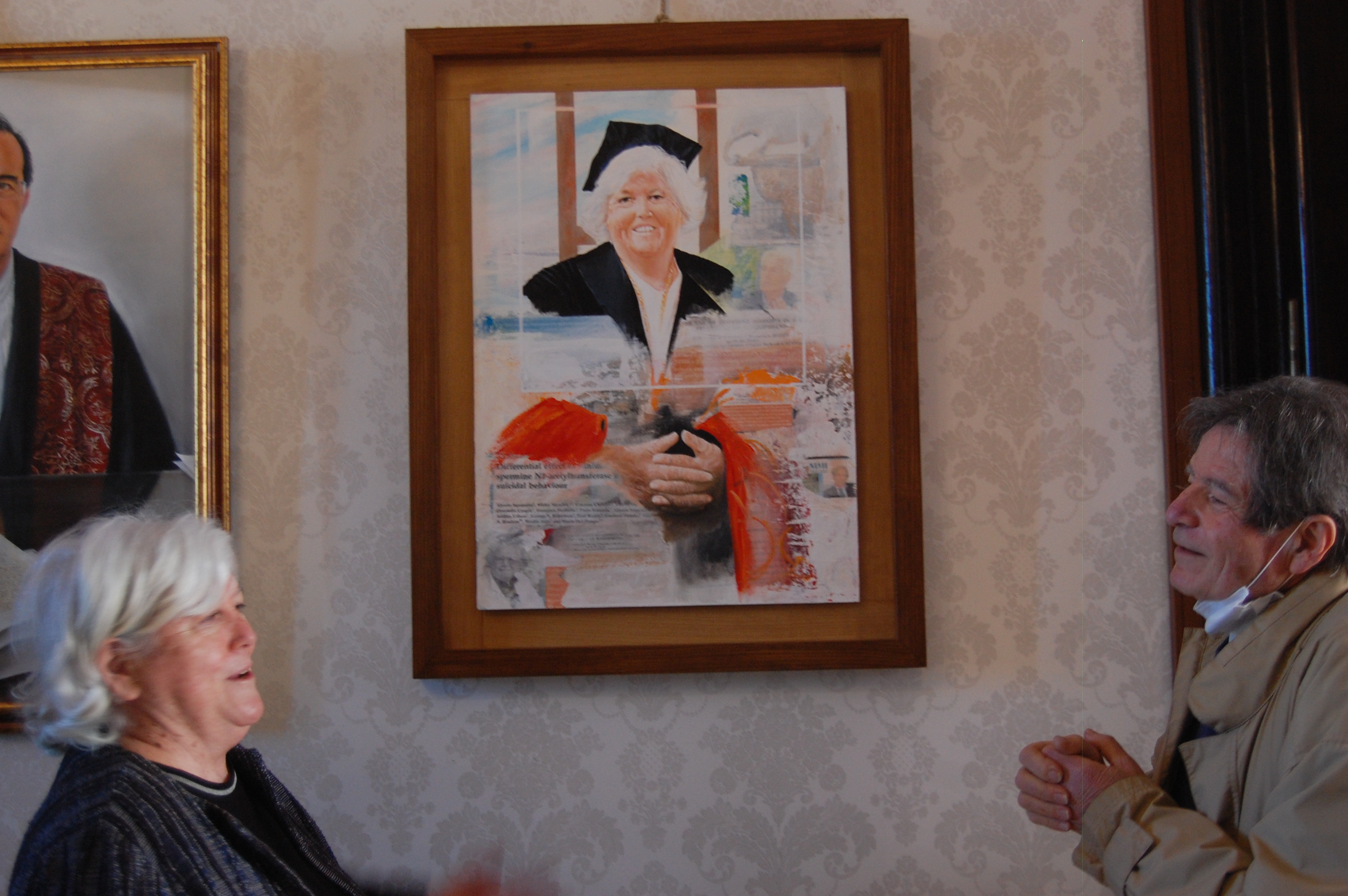 Nella stessa sala, da ieri è appeso il ritratto della ormai ex rettrice realizzato da Angelo Liberati. il pittore, originario di Frascati ma ormai sardo d'adozione, ha realizzato un'opera che ne sintetizza l'opera e il percorso artistico. Oltre alle tecniche del ritratto tradizionale, infatti, l'opera utilizza le metodologie care a Liberati, come il décollage, che ha consentito all'autore di affiancare alla figura della professoressa altre immagini che ricostruiscono i passaggi più importanti della sua carriera.