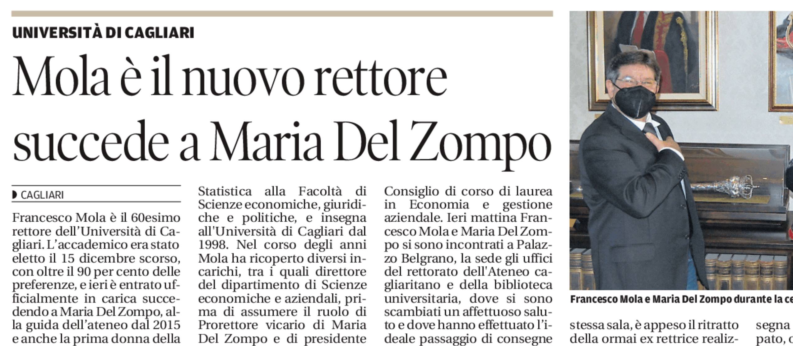 - LEGGI LA NOTIZIA DELL'ELEZIONE DI FRANCESCO MOLA A RETTORE DELL'UNIVERSITA' DI CAGLIARI