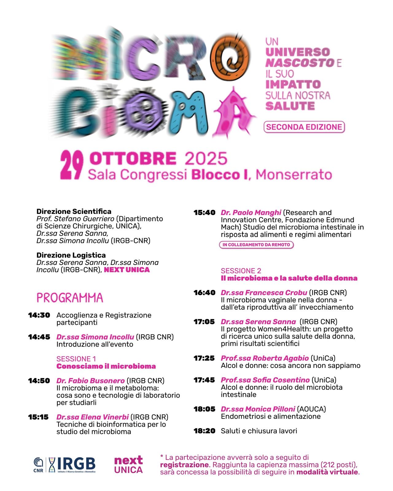 Microbioma. Un universo nascosto e il suo impatto sulla nostra salute_seconda edizione 29 ottobre 2025 Sala Congressi Blocco I