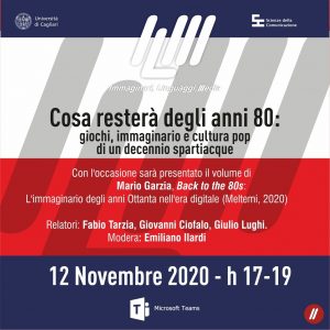 Giovedì 12 novembre dalle 17 alle 19 si terrà il seminario da titolo: "Cosa resterà degli anni '80: giochi, immaginario e cultura pop di un decennio spartiacque".