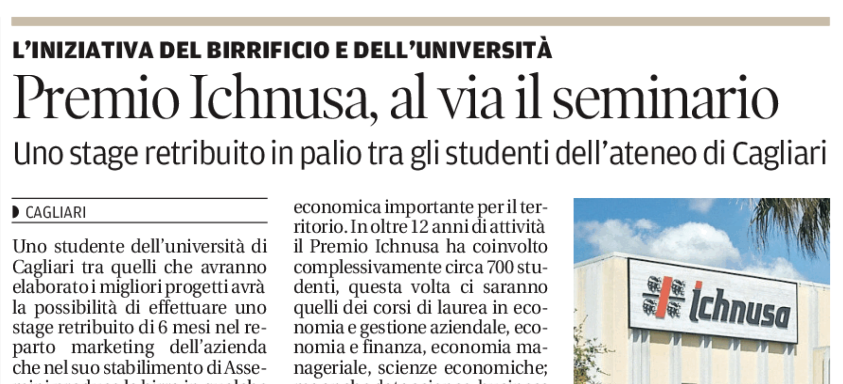Università e Ichnusa, in palio un tirocinio