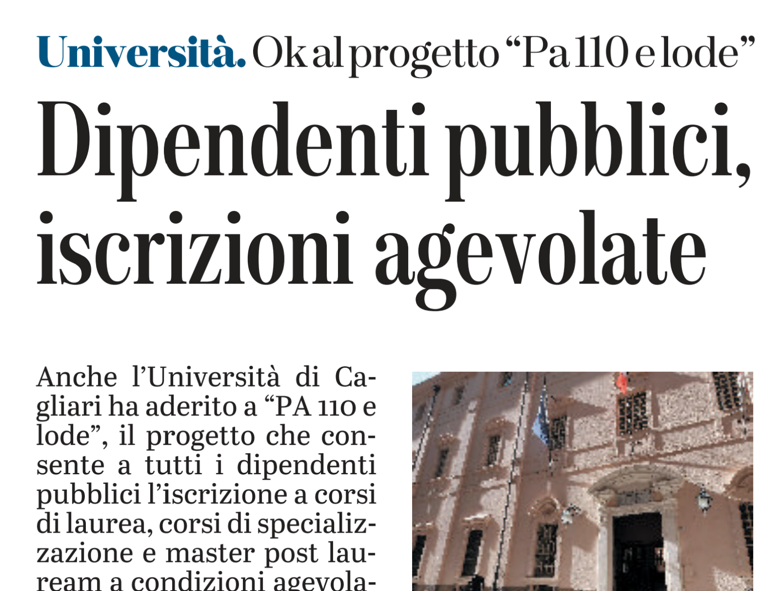 Cagliari, 10 marzo 2022 – Anche l’Università degli Studi di Cagliari ha aderito a “PA 110 e lode”, il progetto che sta coinvolgendo un numero sempre maggiore di atenei italiani e che consente a tutti i dipendenti pubblici l’iscrizione a corsi di laurea, corsi di specializzazione e master post lauream a condizioni agevolate.